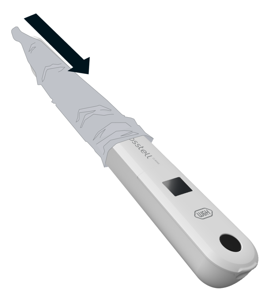 Prior to use on a patient, place a barrier sleeve over the Osstell Classic. The barrier sleeve helps prevent cross-contamination and helps keep dental composite material from adhering to the surface of the instrument tip and body, and discoloration and degradations from cleaning solutions.